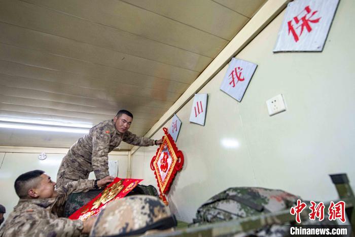 保溫方艙內(nèi),該旅官兵正在用“福”字精心點綴裝飾?!⊥跏鰱| 攝