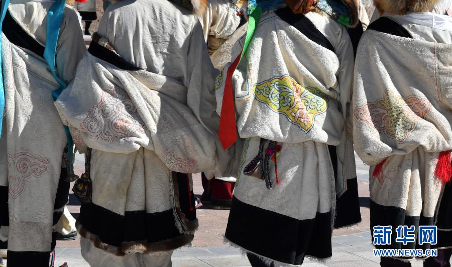 藏北當(dāng)雄縣幾名男子的羊皮袍子上的美麗花紋(2月12日攝)新華社記者 覺(jué)果 攝