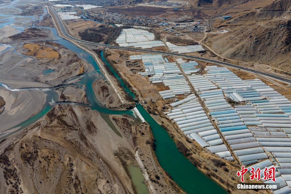 2月26日,航拍西藏拉薩河畔的蔬菜大棚,這些大棚冬季主要種植白菜、蘿卜及大蔥等蔬菜。據(jù)悉,目前西藏蔬菜種植面積已達38.75萬畝,年產(chǎn)量達77.19萬噸,夏秋兩季主要城鎮(zhèn)蔬菜自給率達八成以上,冬春自給率六成左右。西藏自治區(qū)農(nóng)業(yè)農(nóng)村廳介紹,近年來,隨著蔬菜大棚種植面積逐步擴大,加上從區(qū)外調運,西藏民眾餐桌日益豐富。中新社記者 江飛波 攝