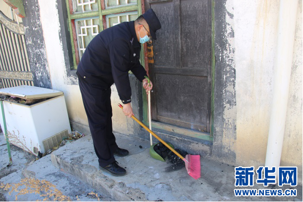 西藏出入境邊檢總站執(zhí)法調(diào)查支隊六隊民警清掃街道(3月4日攝)。新華網(wǎng)發(fā) 代旭攝