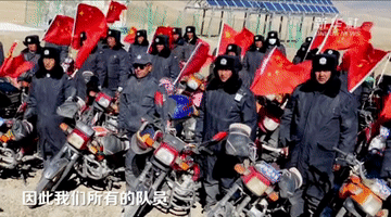 夜幕降臨高原,一天的訓(xùn)練結(jié)束。隊(duì)員們騎著車(chē)從鄉(xiāng)里散去,出發(fā)前不忘再緊一緊車(chē)尾的國(guó)旗。一輪明月懸在喜馬拉雅山脈的群山上,照亮了守邊人的回家路。