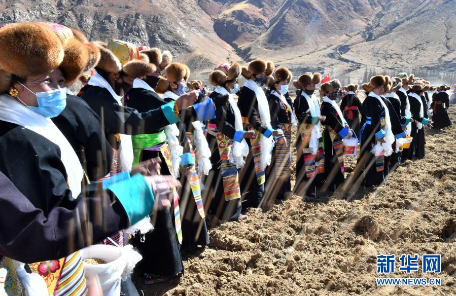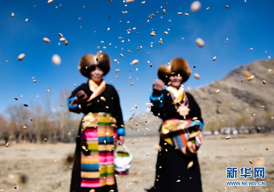 當(dāng)日,位于雅魯藏布江中游的西藏拉薩市、日喀則市、山南市等地農(nóng)村啟動春耕春播,播撒春天的第一粒種子。各地農(nóng)村按著傳統(tǒng)方式,穿著盛裝,端著青稞酒,在田間地頭舉行開春儀式。