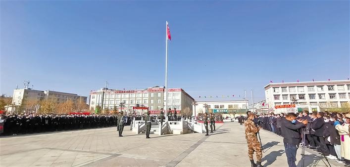 日喀則市紀(jì)念“3·28”西藏百萬(wàn)農(nóng)奴解放紀(jì)念日升旗儀式現(xiàn)場(chǎng)。