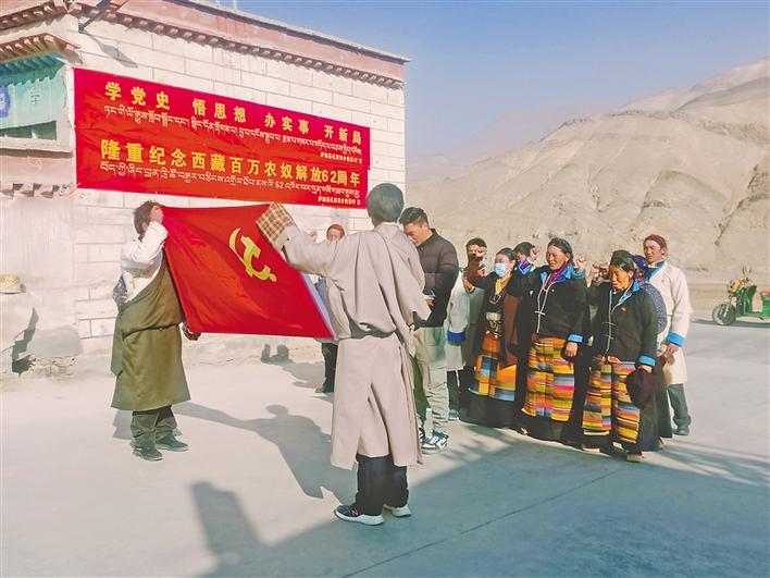 薩迦縣扎西崗鄉(xiāng)查務(wù)村農(nóng)牧民黨員開展重溫入黨誓詞活動(dòng)。