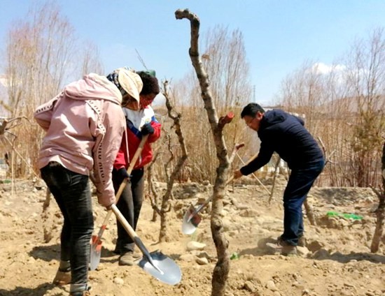 參與栽植活動(dòng)的堅(jiān)參次仁說(shuō):“這么大面積種植桃樹,在普蘭歷史上還是第一次,真心希望全部能成活。等以后開花結(jié)果了,我們就能吃上自己種的桃子了?!?/p>