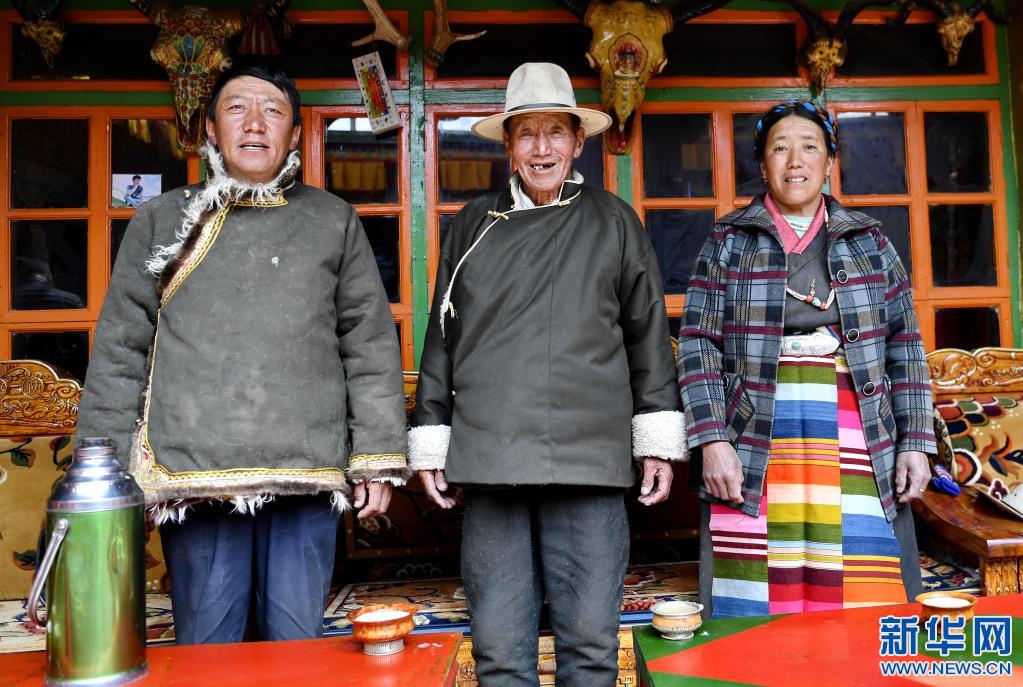 多扎木(中)和兒子、兒媳在家中(3月20日攝)。新華社記者 張汝鋒 攝