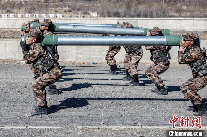 圖為西藏軍區(qū)某旅新兵進行圓木負重訓(xùn)練。西藏軍區(qū)某旅 攝