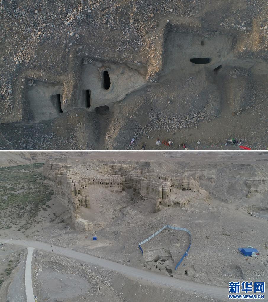 拼版照片:上圖為西藏札達桑達隆果墓地西區(qū)航拍,下圖為西藏札達桑達隆果墓地東區(qū)航拍。(資料照片)新華社發(fā)