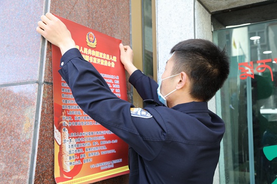 亞東出入境邊防檢查站民警在縣主要街道張貼圖書室開放公告。張雨強(qiáng) 攝