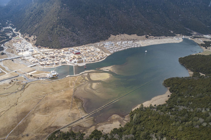這是川藏公路旁的魯朗國(guó)際旅游小鎮(zhèn)風(fēng)光(4月2日攝,無人機(jī)照片)。新華社記者 孫非 攝
