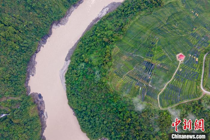 圖為西藏墨脫縣雅魯藏布江邊的茶園,如今茶葉已成為墨脫縣的特色產(chǎn)業(yè)。江飛波 攝