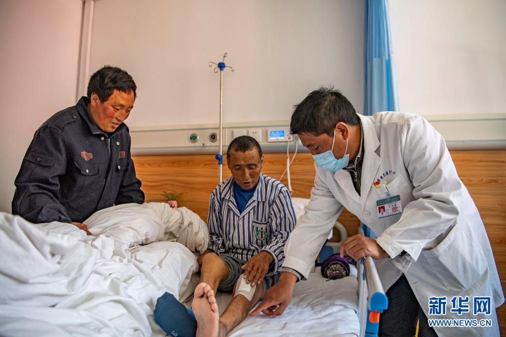 在西藏昌都市八宿縣人民醫(yī)院,醫(yī)生給剛接受了膝關節(jié)置換手術的患者做檢查(3月29日攝)。新華社記者 孫非 攝