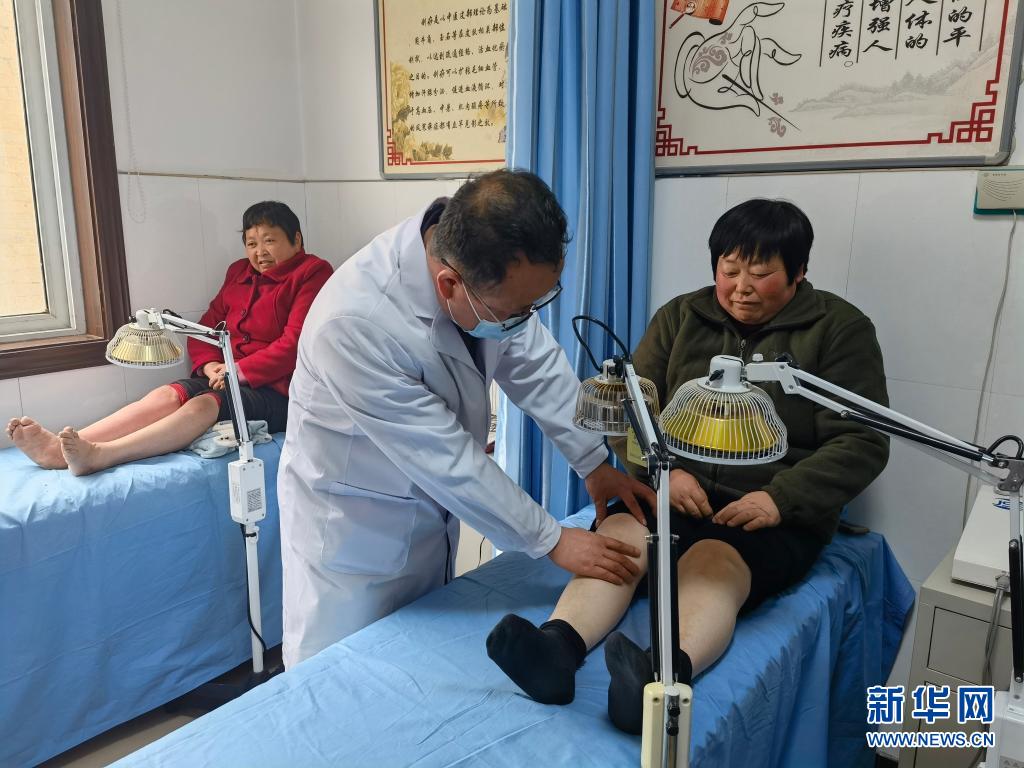 陜西省寶雞市麟游縣崔木鎮(zhèn)中心衛(wèi)生院內,醫(yī)生為大骨節(jié)病患者進行中醫(yī)理療(4月6日攝)。新華社記者 藺娟 攝