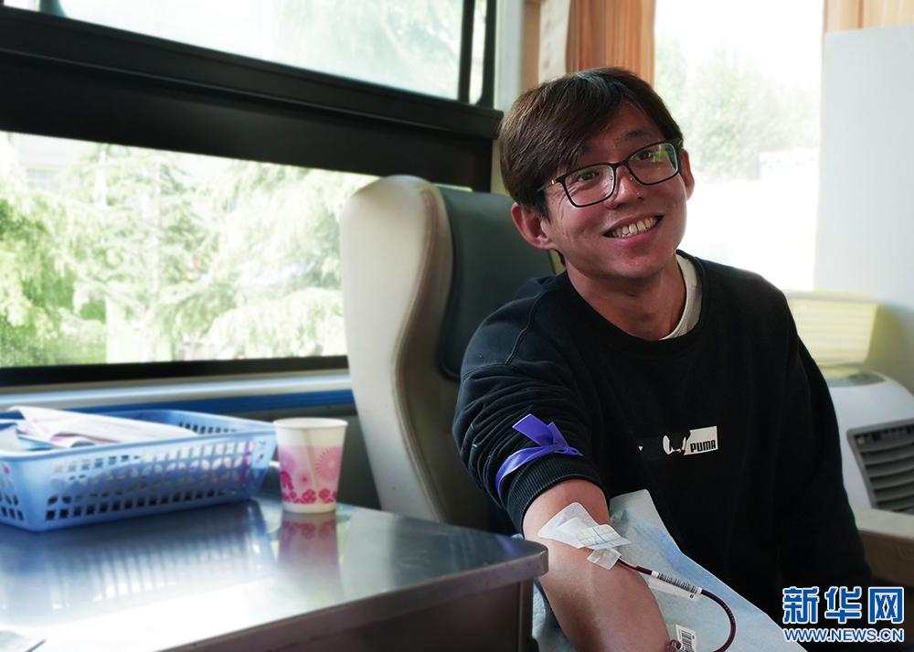 5月27日,來自北京大學人民醫(yī)院的援藏干部朱志峰在獻血。(新華網(wǎng) 旦增努布攝)