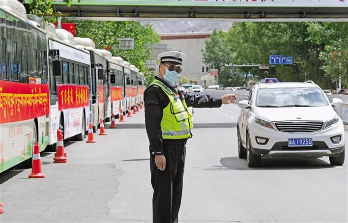 圖為交警在考點外疏導交通秩序。記者 洛桑 次旺 次仁平措 攝
