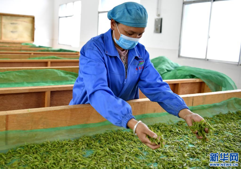 西藏易貢茶場加工車間的工人在進(jìn)行茶葉攤青(5月22日攝)。新華社記者 張汝鋒 攝