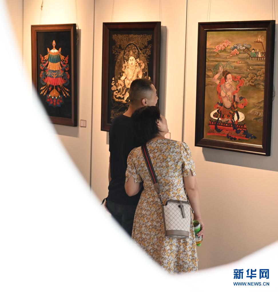 6月12日,市民在福州三坊七巷參觀唐卡漆畫和唐卡等。新華社記者 林善傳 攝