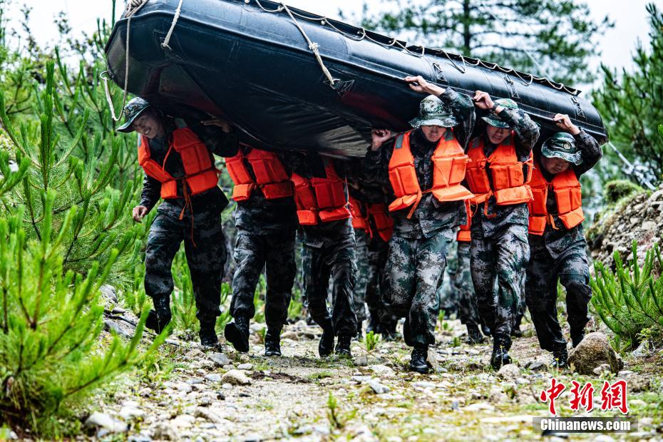 圖為官兵正在攜舟沖鋒。王述東 攝