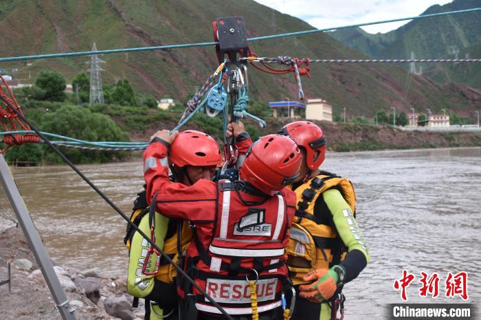 圖為山洪災(zāi)害防汛演練中進(jìn)行翻舟自救科目。昌都市森林消防支隊(duì) 攝