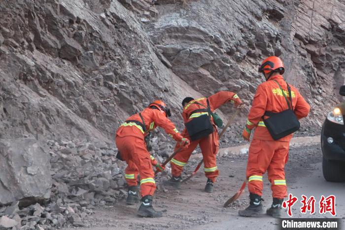 圖為消防指戰(zhàn)員清除碎石。昌都市森林消防支隊(duì) 攝