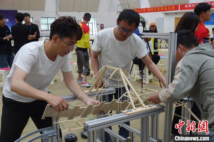 圖為第三屆西藏大學(xué)生結(jié)構(gòu)設(shè)計(jì)競(jìng)賽比賽現(xiàn)場(chǎng)。冉文娟 攝