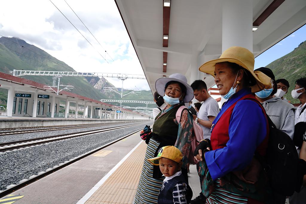 2021年7月11日,旅客正在拉林鐵路加查火車站等待乘車。新華社記者劉洪明 攝