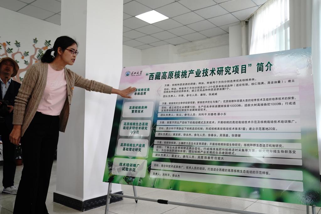7月8日,長江大學(xué)西藏高原核桃產(chǎn)業(yè)研究所在山南市加查縣加查鎮(zhèn)龍巴村揭牌,近20人研究團隊將為當?shù)睾颂耶a(chǎn)業(yè)提供優(yōu)良品種選育、嫁接等科技服務(wù)。長江大學(xué)教師劉利平博士團隊在加查工作4個多月,研究核桃資源分布、病蟲害等。
