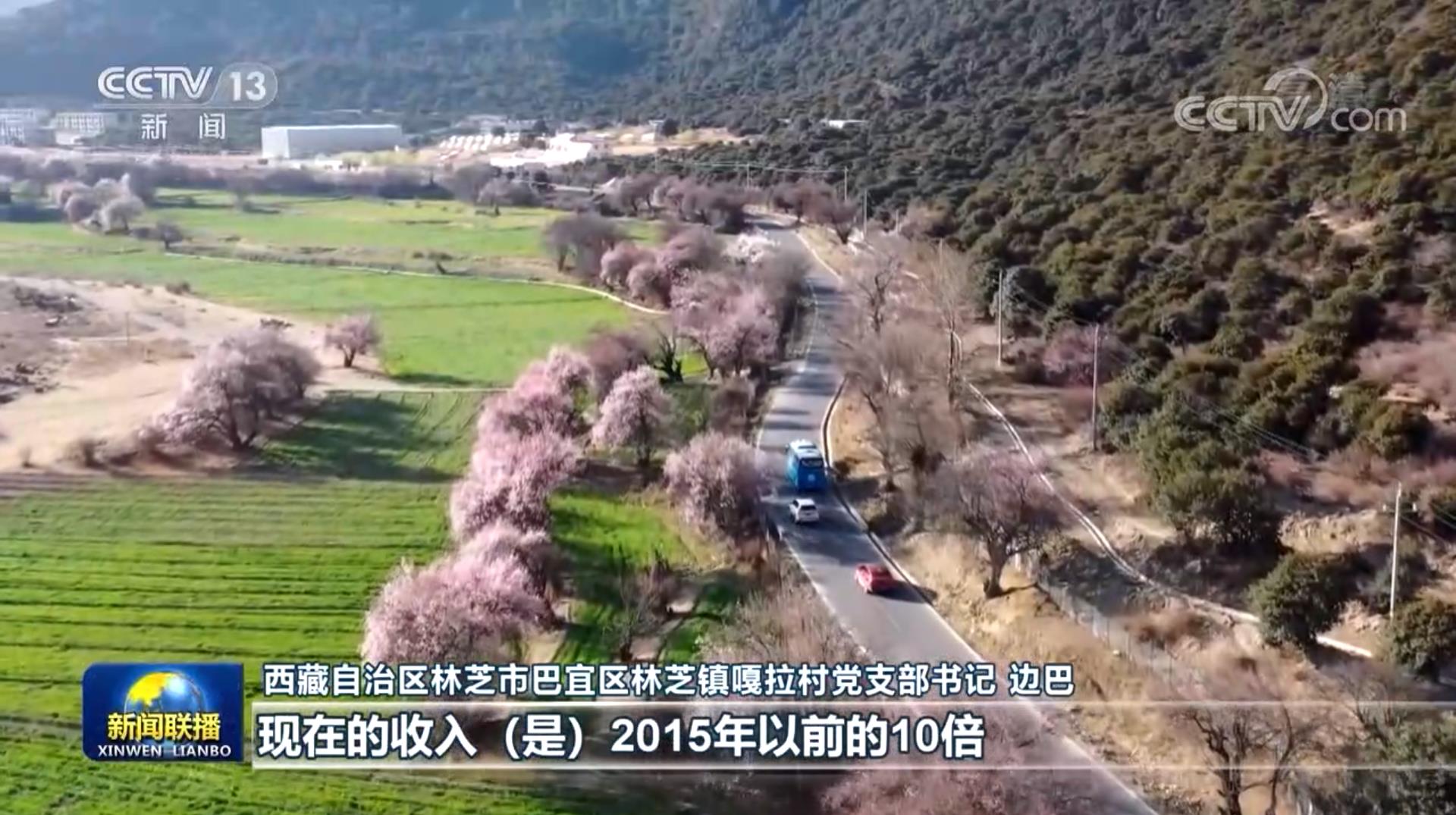 西藏自治區(qū)林芝市巴宜區(qū)林芝鎮(zhèn)嘎拉村黨支部書記 邊巴:以前,桃樹(被)群眾砍下來燒飯,后來,我們修復生態(tài)。2015年,我們的旅游基礎設施全方面打造,現在的收入(是)2015年以前的10倍,現在群眾都明白綠水青山就是金山銀山。