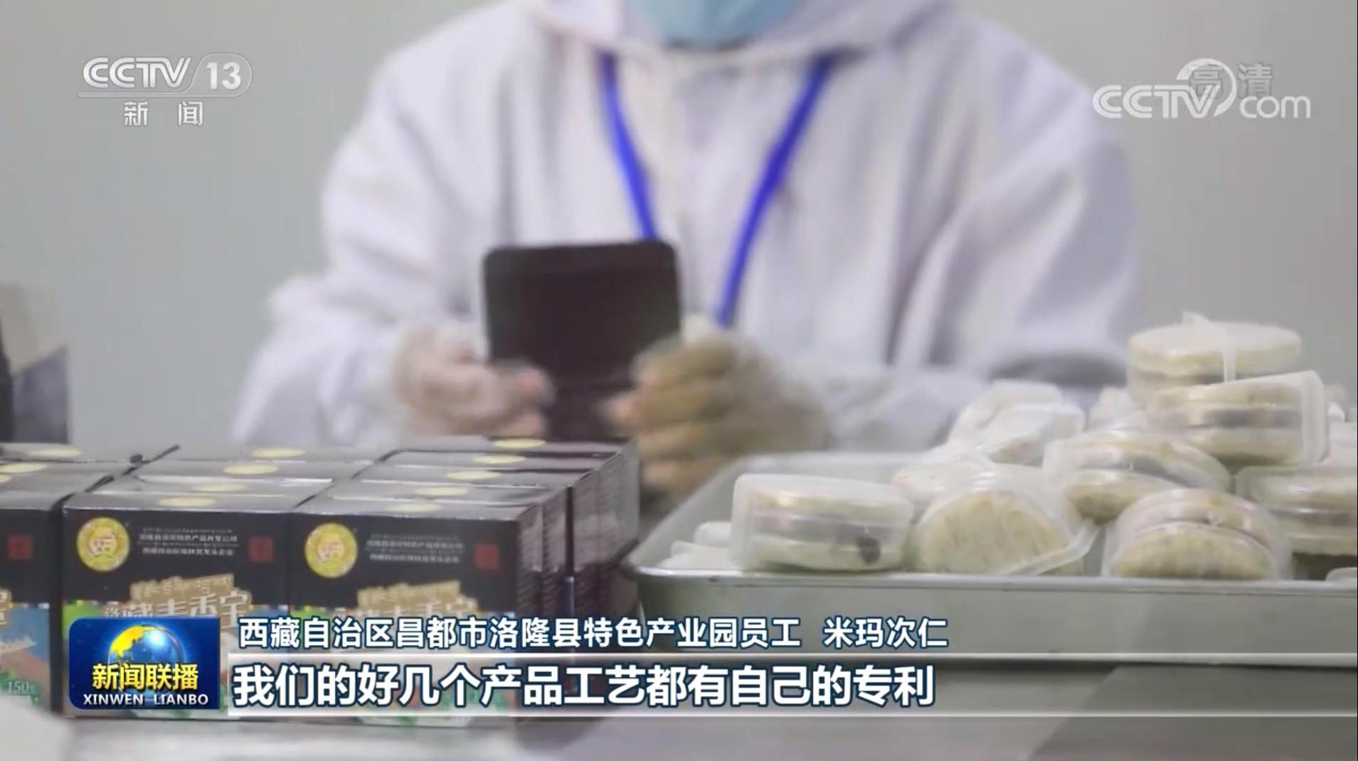 西藏自治區(qū)昌都市洛隆縣特色產業(yè)園員工 米瑪次仁:這是我們公司生產的青稞漢堡,已經成為西藏航空食品,非常受歡迎。 我們的好幾個產品工藝都有自己的專利。