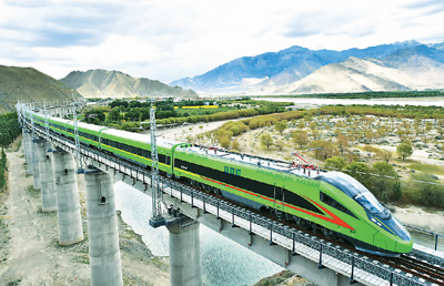 復(fù)興號(hào)列車行駛在西藏山南市境內(nèi)。新華社記者 覺(jué) 果攝