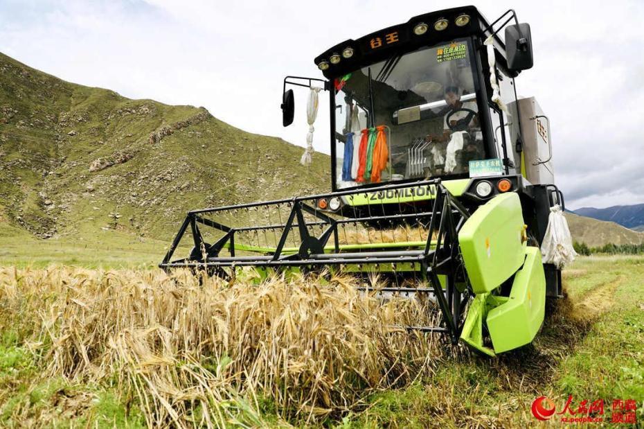 農(nóng)業(yè)機(jī)械化在當(dāng)?shù)厝嫫占?。人民網(wǎng) 次仁羅布攝