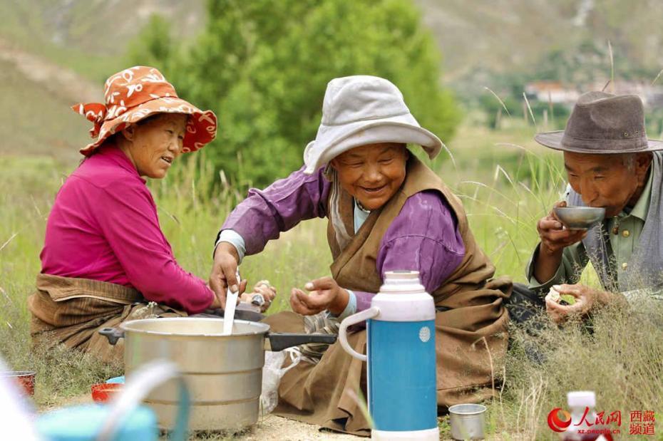 忙完農(nóng)活一起開(kāi)飯。人民網(wǎng) 次仁羅布攝