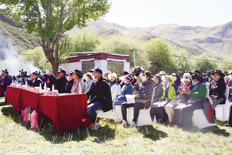 啟動(dòng)儀式結(jié)束后,還舉辦了第六屆覺木隆派藏戲文化旅游節(jié),邀請(qǐng)堆龍德慶區(qū)10支覺木隆藏戲表演隊(duì)表演特色劇目并為他們授牌。堆龍德慶區(qū)委常委、宣傳部部長楊麗表示,本屆藏戲文化旅游節(jié),廣發(fā)“藏戲達(dá)人召集令”,邀請(qǐng)各派系、各唱腔達(dá)人表演特色劇目選段、共話藏戲,就是希望通過共建文化陣地、共享文化資源、共辦文化活動(dòng)的形式,凝聚合力,充分彰顯藏戲文化魅力,弘揚(yáng)優(yōu)秀傳統(tǒng)民族文化,保護(hù)和傳承藏戲文化遺產(chǎn),推動(dòng)藏戲文化深度發(fā)展?!昂軜s幸能參加此次活動(dòng),那嘎藏戲團(tuán)于1978年成立,那年我13歲,藏戲團(tuán)剛成立我就加入了,因?yàn)槲沂窒矚g藏戲,希望自己能將這種傳統(tǒng)藝術(shù)傳承下去?!苯衲?6歲的安多說。