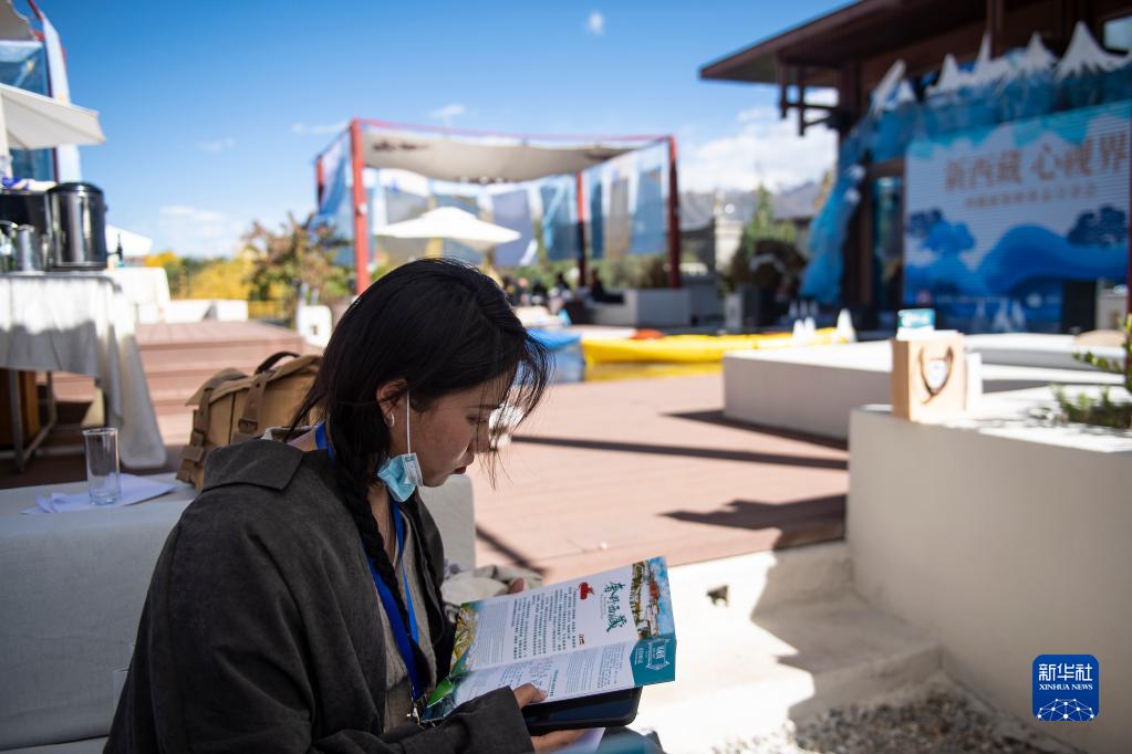 9月30日,一名媒體記者在西藏旅游新業(yè)態(tài)分享會上翻看西藏旅游線路的相關(guān)介紹。新華社記者 孫瑞博 攝