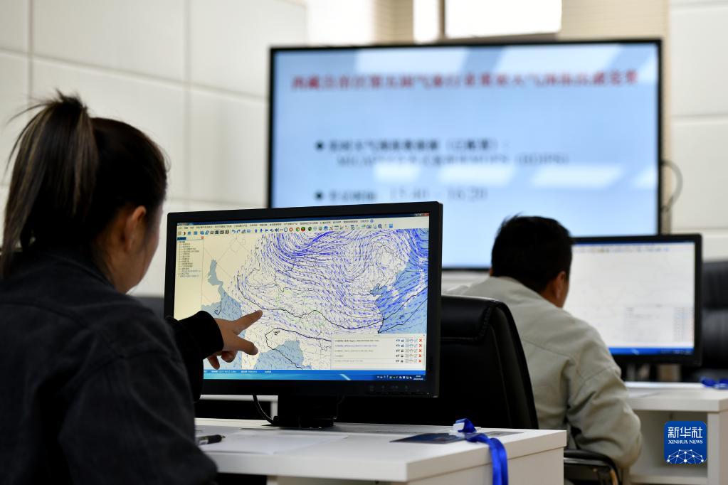 2019年10月,西藏自治區(qū)第五屆氣象行業(yè)重要天氣預(yù)報技能競賽在拉薩舉行。圖為參賽選手在實時天氣預(yù)報考場內(nèi)比賽。新華社記者 李鑫 攝
