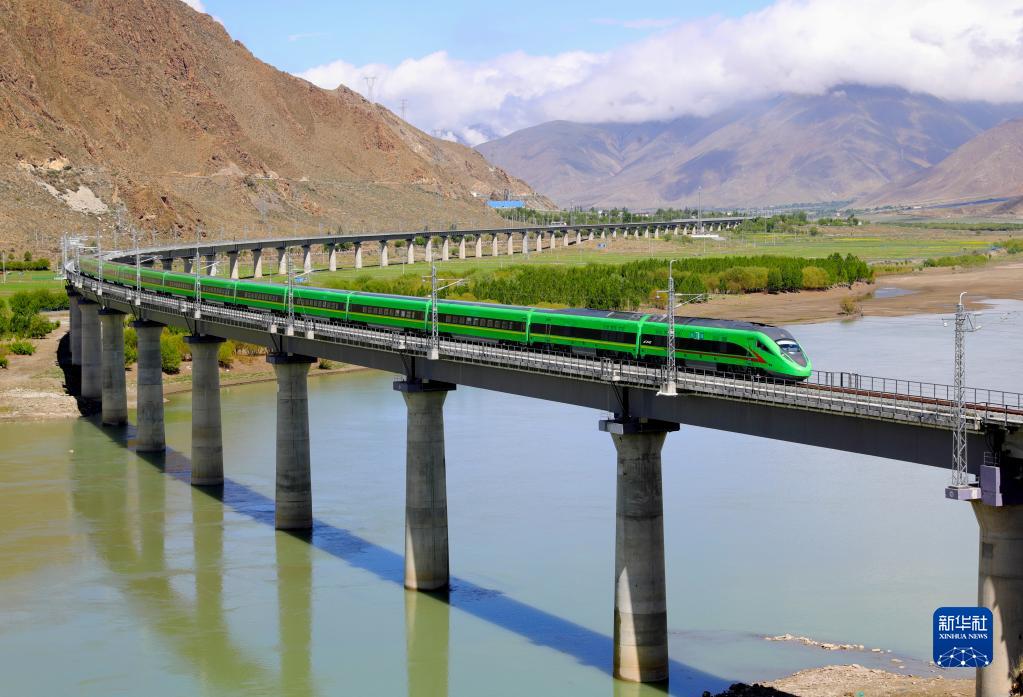 試運(yùn)行的復(fù)興號(hào)列車行駛在桑日縣境內(nèi)(6月8日攝)。新華社記者 普布扎西 攝
