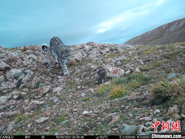 資料圖為2021年8月24日,西藏自治區(qū)那曲市境內,由紅外相機拍攝到的雪豹活動影像。 中新社發(fā) 山水自然保護中心 供圖