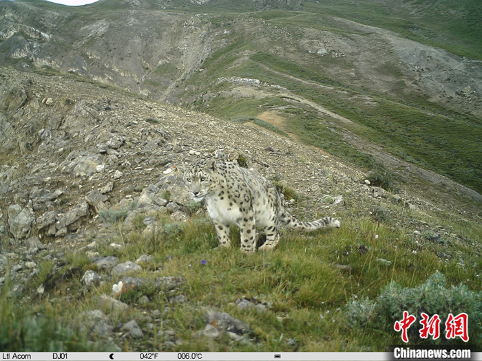 資料圖為2021年8月19日在西藏自治區(qū)那曲市境內由紅外相機拍攝到的雪豹活動影像。 中新社發(fā) 山水自然保護中心 供圖