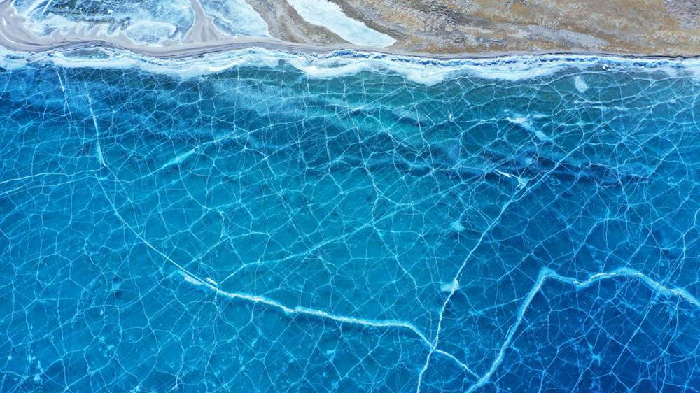 位于西藏山南市洛扎縣和浪卡子縣交界處的普莫雍錯(cuò),是喜馬拉雅山脈間的一個(gè)咸水湖,湖面海拔5070m。冬季的普莫雍錯(cuò)湖面會(huì)結(jié)冰,冰面通透可見湖底,在陽光的照射下,呈現(xiàn)出動(dòng)人心魄的藍(lán)。