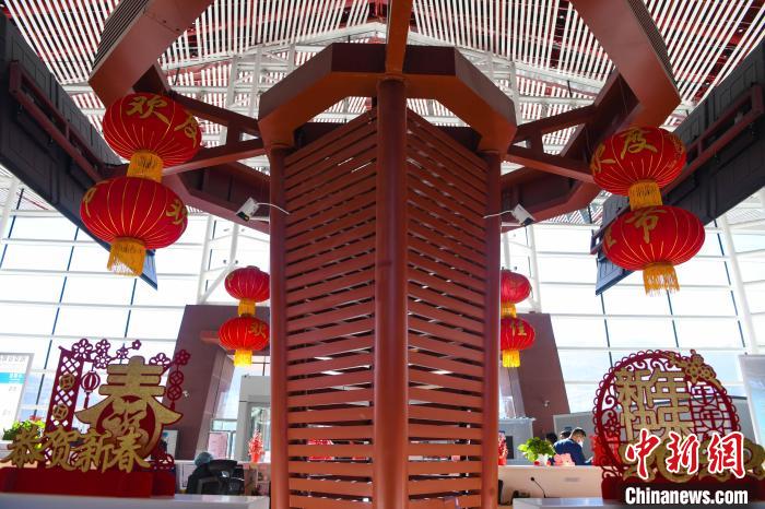 圖為拉薩貢嘎機場大廳年味裝扮迎接春節(jié)。貢嘎來松 攝