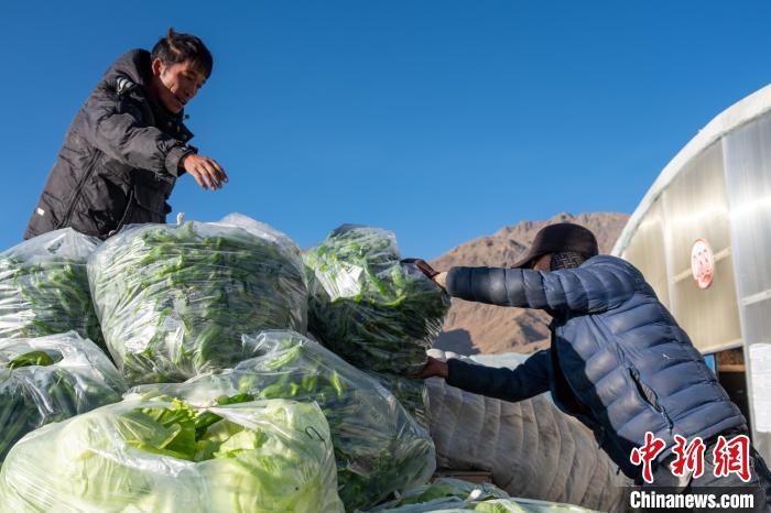 圖為當(dāng)?shù)剞r(nóng)牧民轉(zhuǎn)運剛采摘的大棚蔬菜前往日喀則市區(qū)。江飛波 攝