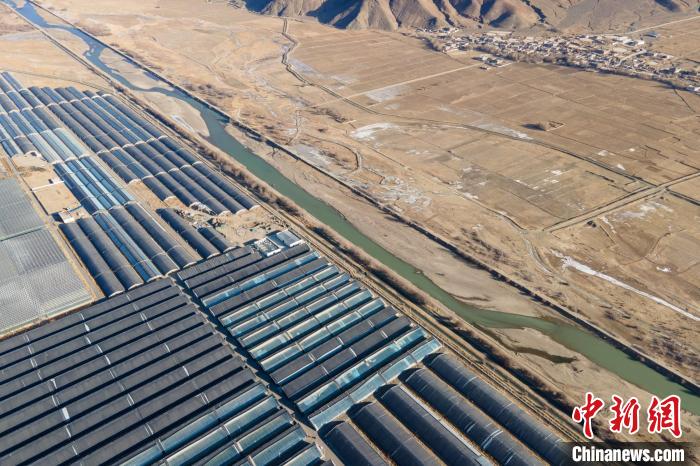 圖為1月28日上午,航拍西藏日喀則珠峰現(xiàn)代農(nóng)業(yè)科技創(chuàng)新博覽園蔬菜大棚。江飛波 攝