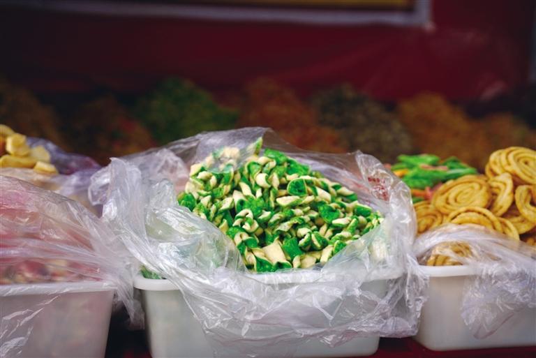 連日來(lái),拉薩市區(qū)內(nèi)的眾多店鋪換裝成“卡賽”店。記者走進(jìn)城中的一家店鋪,店內(nèi)擺滿(mǎn)了精美的“卡賽”。另一旁,工作人員各自分工,有的正在將切割、染色好的面片捏成不同樣式,有的正在將做好形狀的面團(tuán)放到鍋里。