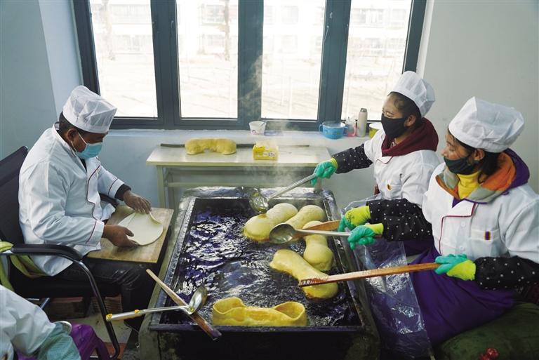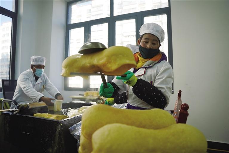 為了保證“德卡”與“卡賽”的品質(zhì),恩惠苑社區(qū)還提前聯(lián)系拉薩市墨竹工卡縣訂購(gòu)面粉與食用油,確保原材料的安全與口感。“為了增加銷(xiāo)量,我們提前對(duì)接了一些社區(qū)居委會(huì)和商戶(hù),并低價(jià)對(duì)內(nèi)銷(xiāo)售,讓我們社區(qū)的搬遷群眾也能夠低價(jià)購(gòu)買(mǎi)到年貨。”次仁巴珠說(shuō)。