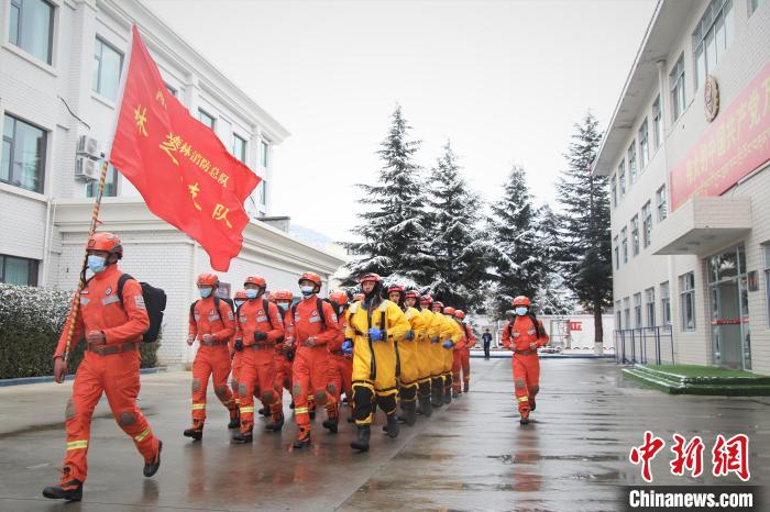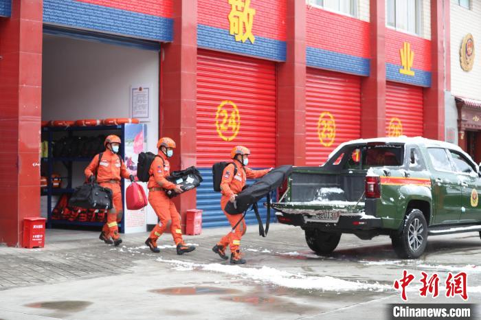 圖為消防員集結出發(fā)。索朗旺久 攝