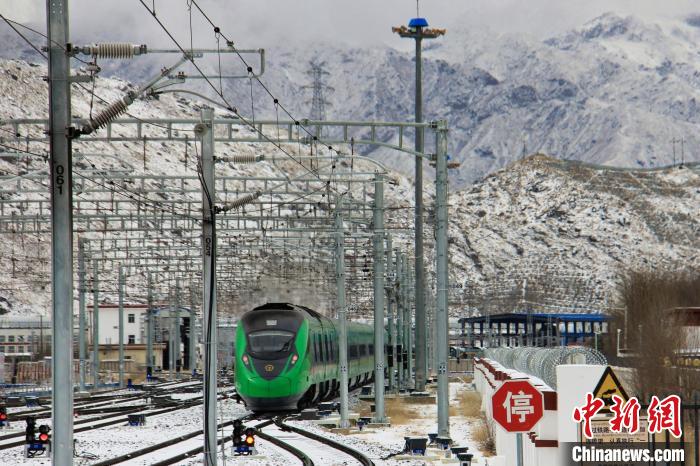 圖為日喀則方向動車組進入拉薩車站?!±詈P?攝