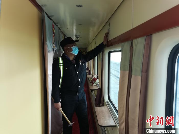 資料圖為嘎瑪達吉對列車服務設施進行檢查。青藏集團公司供圖