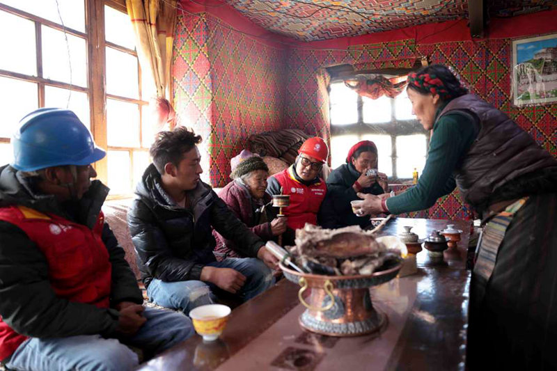 國(guó)網(wǎng)墨竹工卡縣供電公司員工與讓桌家人一起談?wù)撝iZ昱翰攝