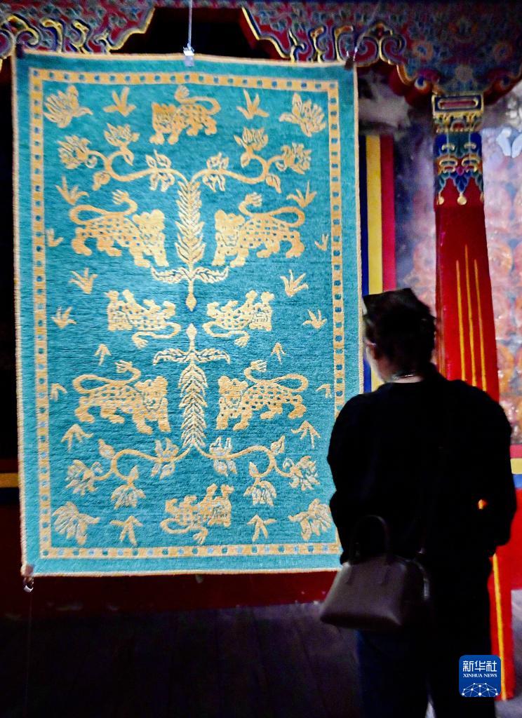 當(dāng)日,名為“智慧和無畏”的“虎毯”展覽在拉薩吉本崗藝術(shù)中心展出。西藏的非遺工作者根據(jù)古代藏毯藏品重新挖掘,整理了以“虎”為主題的圖案,設(shè)計制作了本次展覽作品。本次展覽展出20余件各具特色的藏毯藝術(shù)作品,展覽將持續(xù)到5月初。