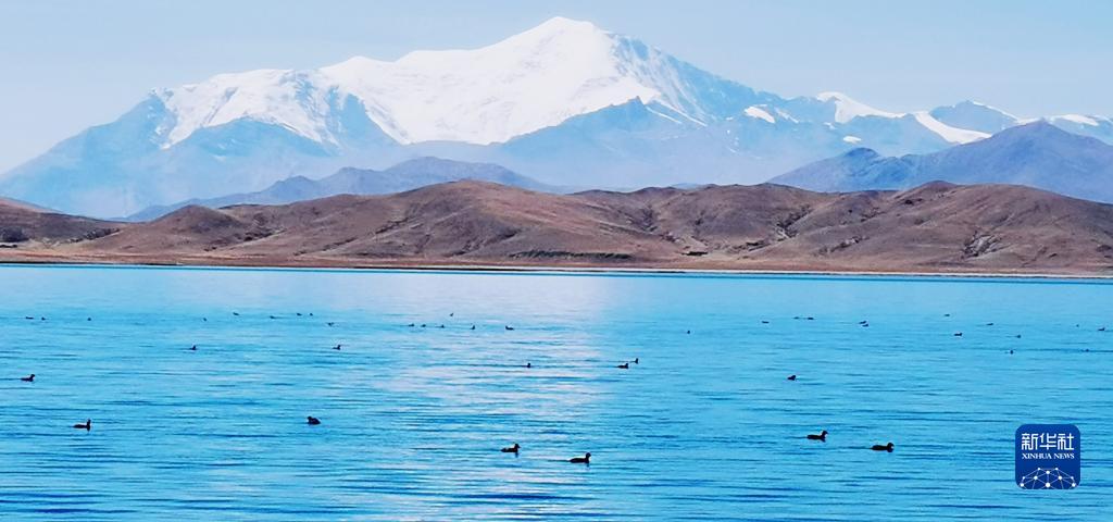 這是在特布拉村拍攝到的羊卓雍錯(cuò)湖上的鳥(niǎo)群。新華社記者 沈虹冰 攝(手機(jī)照片,3月19日攝)